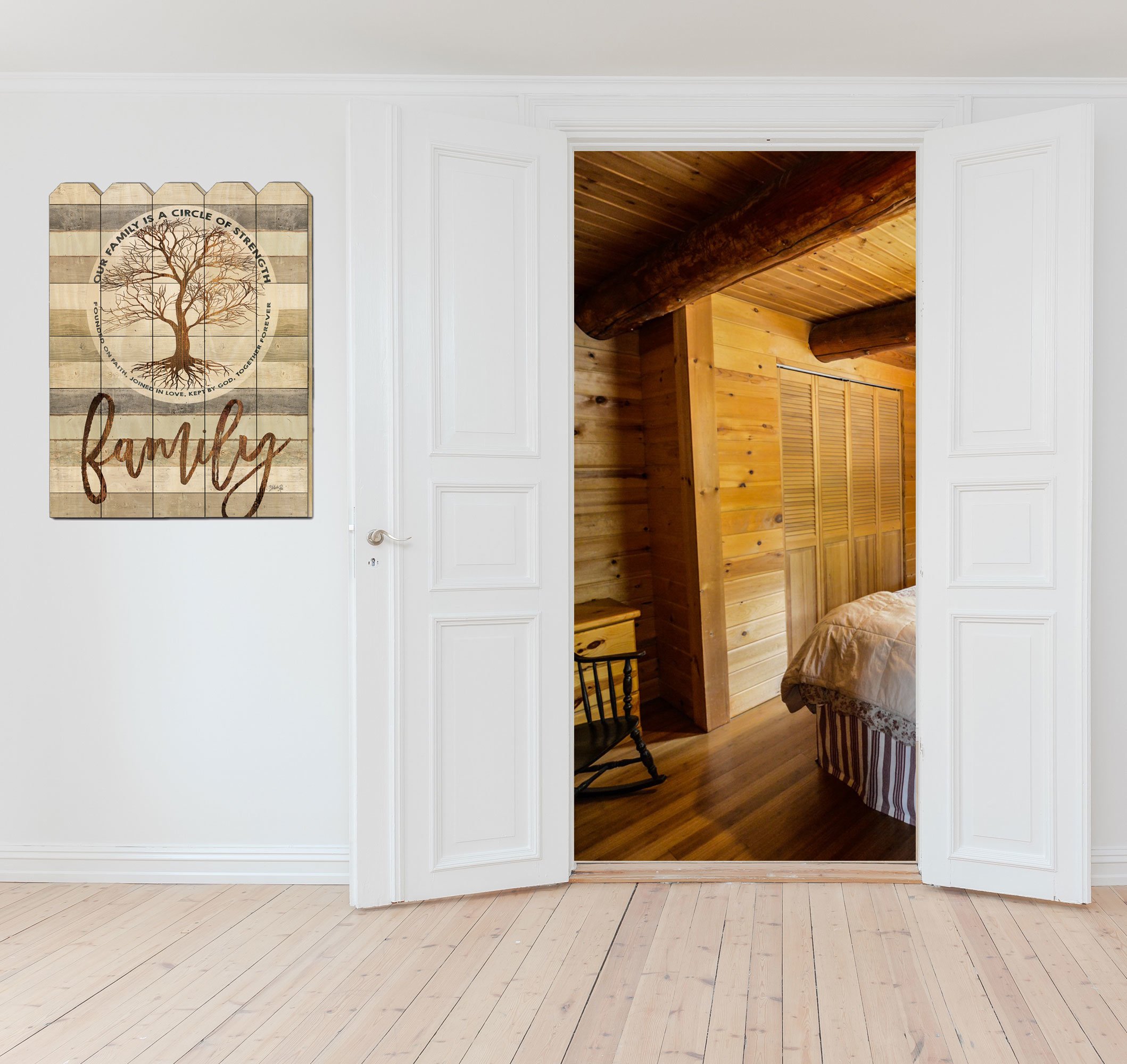 MA2497P - Family - Circle of Strength by artisan Marla Rae. Art printed directly on a 16 x 20 wood picket fence; reminding us of the family circle. Print states that in the family is our strength; arrives ready to hang. Made in the USA by skilled American workers. • ARTWORK is printed on a wooden fence.•Sawtooth hanger on the back makes this beautiful artwork ready to hang.•Baltic Birch grain pattern adds natural beauty to the framed art. Fence has sawtooth hanger for the ease of hanging.•THIS FINE HOME DECOR piece made in the USA by Woman Owned Business (WBE) is a perfect gift for a friend or relative.