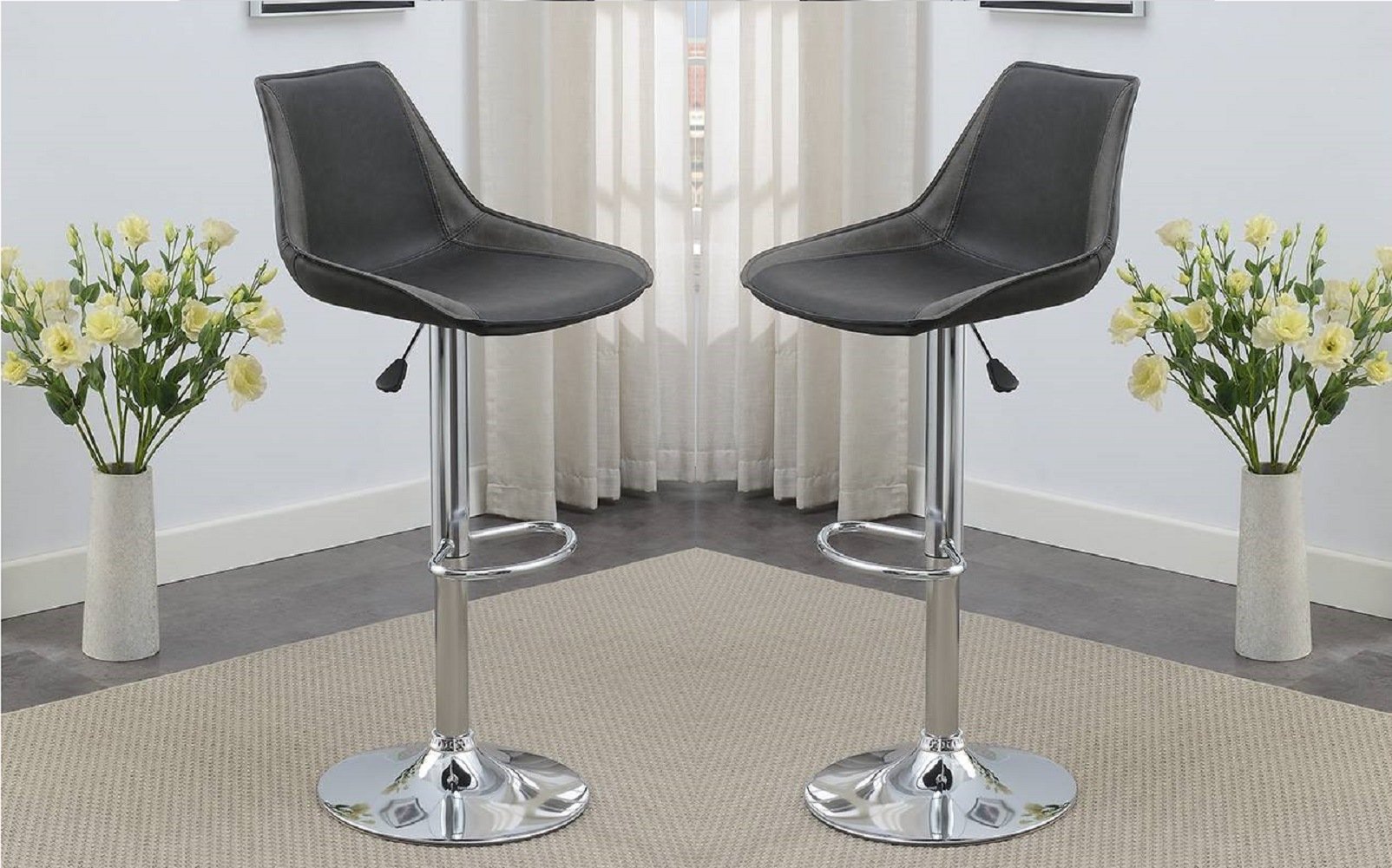 Home > Dining Kitchen Adjustable Bar stool Chair Ebony Color Wax Polyurethane Leather Chrome Base Modern Set of 2 Chairs / Bar Stool