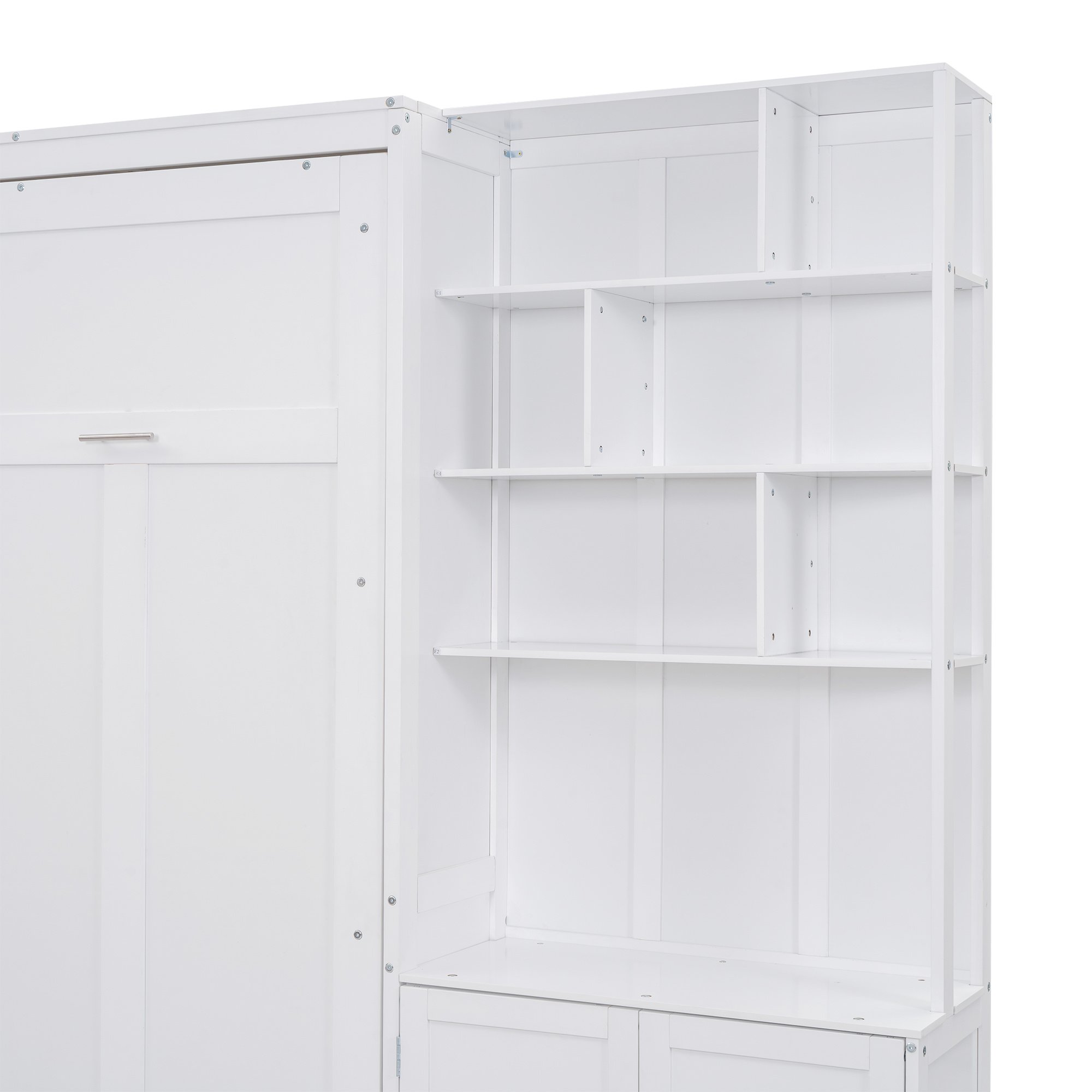 Home > Full Size Murphy Bed with Multiple Storage Shelves and A Cabinet, White