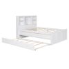 Full Size Platform Bed with Storage Headboard, Charging Station, Twin Size Trundle and 3 DrawersThis storage platform bed is simple and fashionable. The headboard features 5 shelves for your storage. 3 drawers offer extra storage space. The trundle can effectively utilize the room space. This is is enough to accommodate your friends or any overnight sleepers. The whole construction is made of solid wood and MDF, so it's designed for long-term use.DescriptionMaterialPine Wood+MDFSizeFullColorAntique WhiteNumbers of Package2Spring BoxNo needAssembly RequiredYesOriginVietnam
