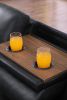 Rounded arms, subtle tufting, and nailhead trim complete this traditional design, One of the middle seats pulls down to reveal two cup holders for your favorite beverages.