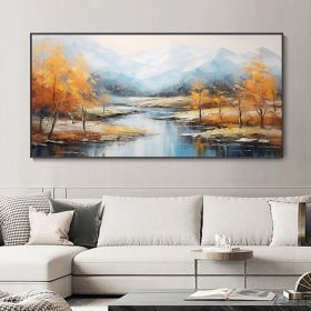 Original Hand Painted Snowy Mountain Canvas Oil Painting Custom Autumn Forest Wall Art Abstract River Landscape Painting Modern Living Room Decor Gift (size: 100x200cm)