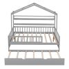 Wooden Full Size House Bed with Twin Size Trundle,Kids Bed with Shelf, Gray